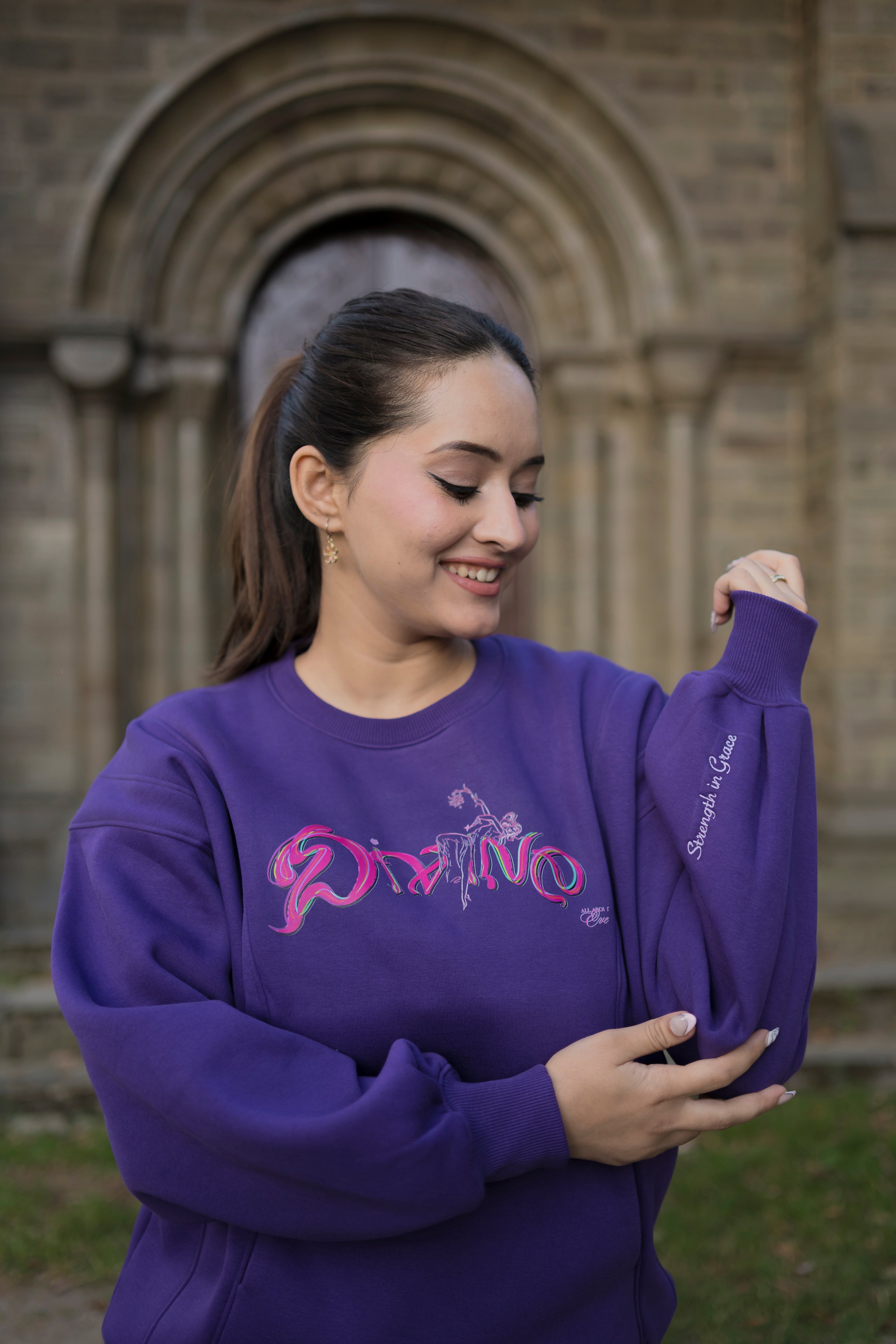 Sleeve quote: “strength in grace” (embroidered, left sleeve)