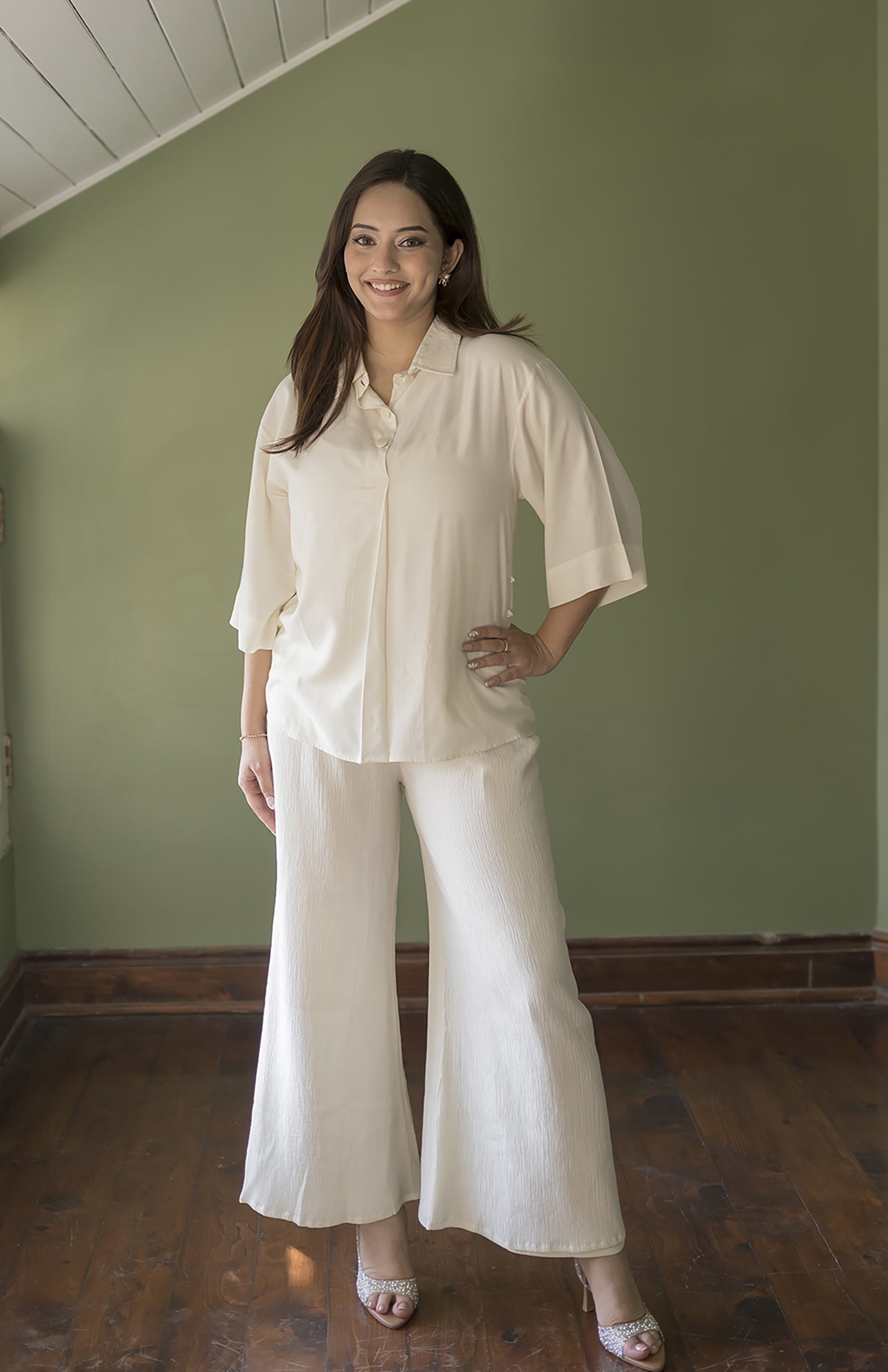 Ivory Muse Flow Fit Bell Bottom Trousers