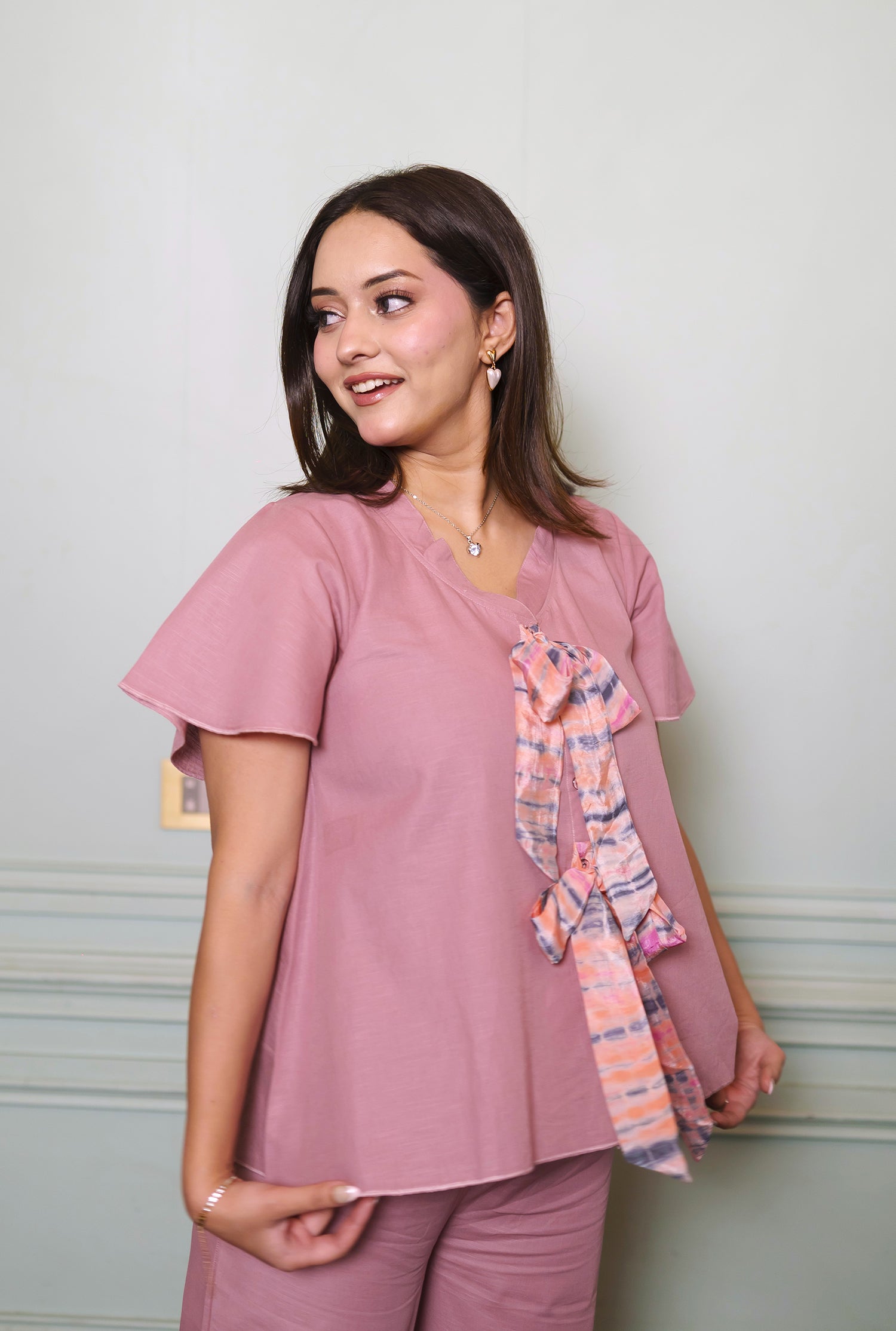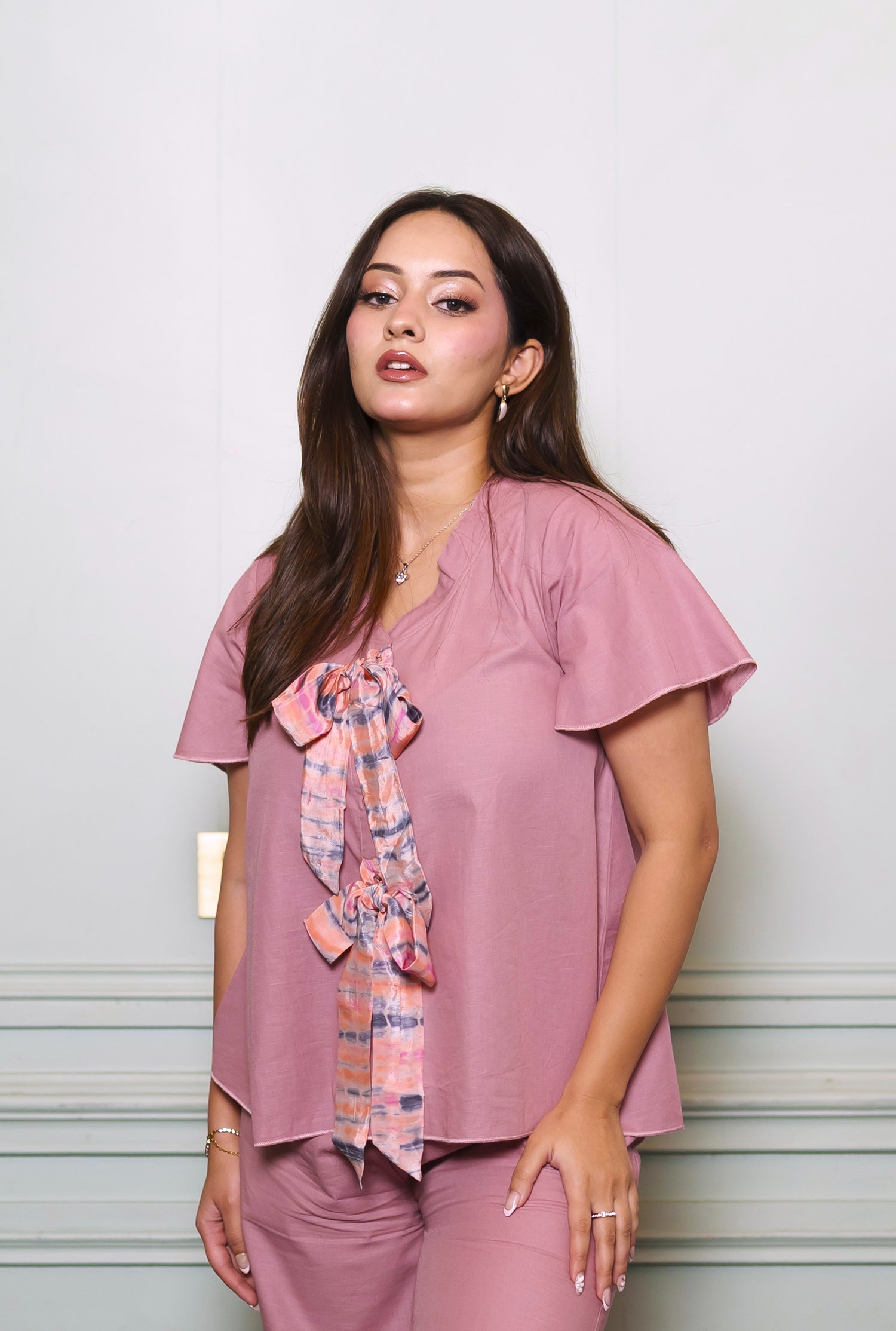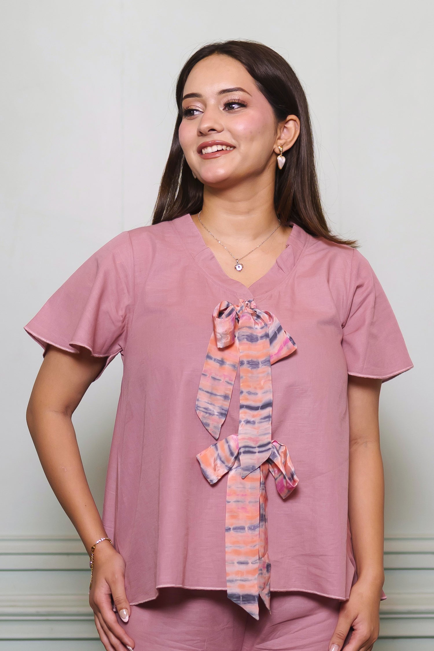 Rosé Reverie Double Bow Top